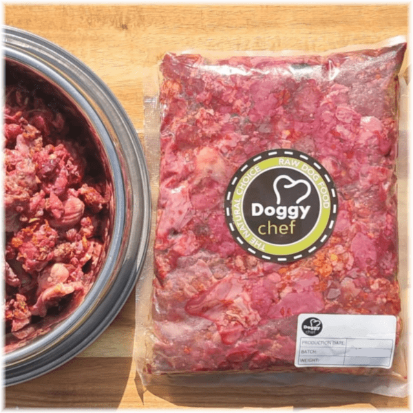 Introduce your canine companions to the pawlicious taste of our frozen uncooked, raw Chefs Meaty Mix with Veggies (NO CHICKEN) minced food for dogs. Specially designed as a complementary and biologically appropriate raw food, our premium offering ensures a safe and high-quality product that exceeds your expectations. Each 250gr pack of our meal packs is convenient to portioned by pet parents, making feeding a breeze. Whether you have nobles, mutts, or pups, our pawlicious food caters to all furry friends, from couch potatoes to avid athletes and hunters. It’s the perfect choice for natural, healthy, and nutrient-dense sustenance.